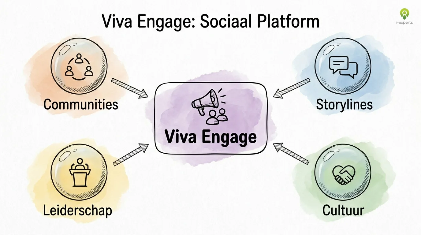Je kent het vast: een vraag die je stelt in een Teams-chat verdwijnt binnen een dag in de stroom berichten. Viva Engage lost dat op. Volgens Microsoft's officiële documentatie is het het sociale communicatieplatform binnen de Microsoft Viva suite, bedoeld om medewerkers organisatiebreed met elkaar te verbinden. Het platform biedt een sociale laag bovenop Microsoft 365 waarin collega's kennis delen, vragen stellen en op de hoogte blijven van wat er speelt in de organisatie.