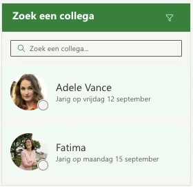 Voor nieuwe medewerkers is dit onderdeel ook onderdeel van het onboardingproces: zij zien direct wie er binnen hun team zit, met profielfoto, contactopties en eventuele jubilea of verjaardagen. Een klik op de profielkaart opent een chat- of videogesprek in Microsoft Teams. Zo wordt collega’s vinden niet alleen praktischer, maar ook persoonlijker.